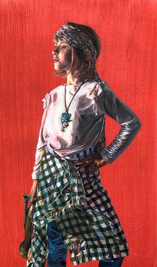 Paterson’s 2019 exhibition at GSA, The Arbitrary Ritual, was inspired by collaborations she undertook at Brooklyn’s International Studio and Curatorial Programme while on the 2016-17 Steven Campbell New York Scholarship. Since then, Claire has continued with this spirit of collaboration, inviting the subjects of her paintings to create their own new identities and mythologies through posing in a theatrical way – a method which often produces exciting and spontaneous results.