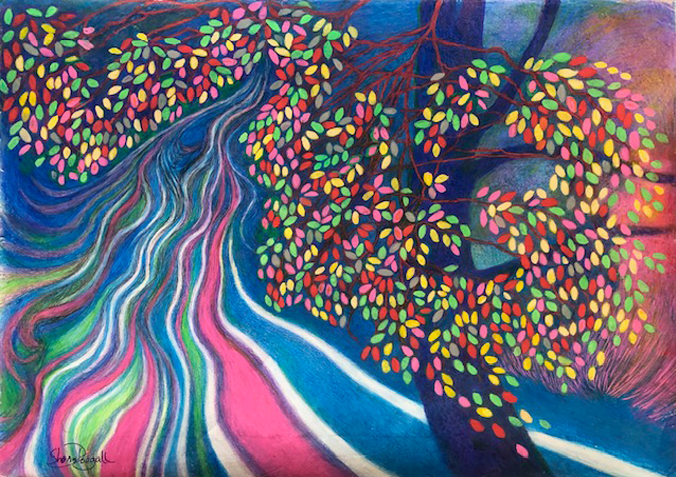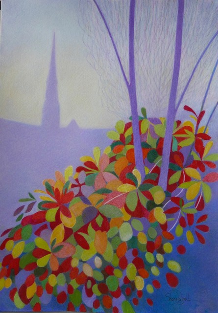 She has a passion for colour whatever the theme and enjoys creating different moods through colour, particularly in landscape, where the different seasons can be interpreted using colour and line to convey mood and atmosphere.